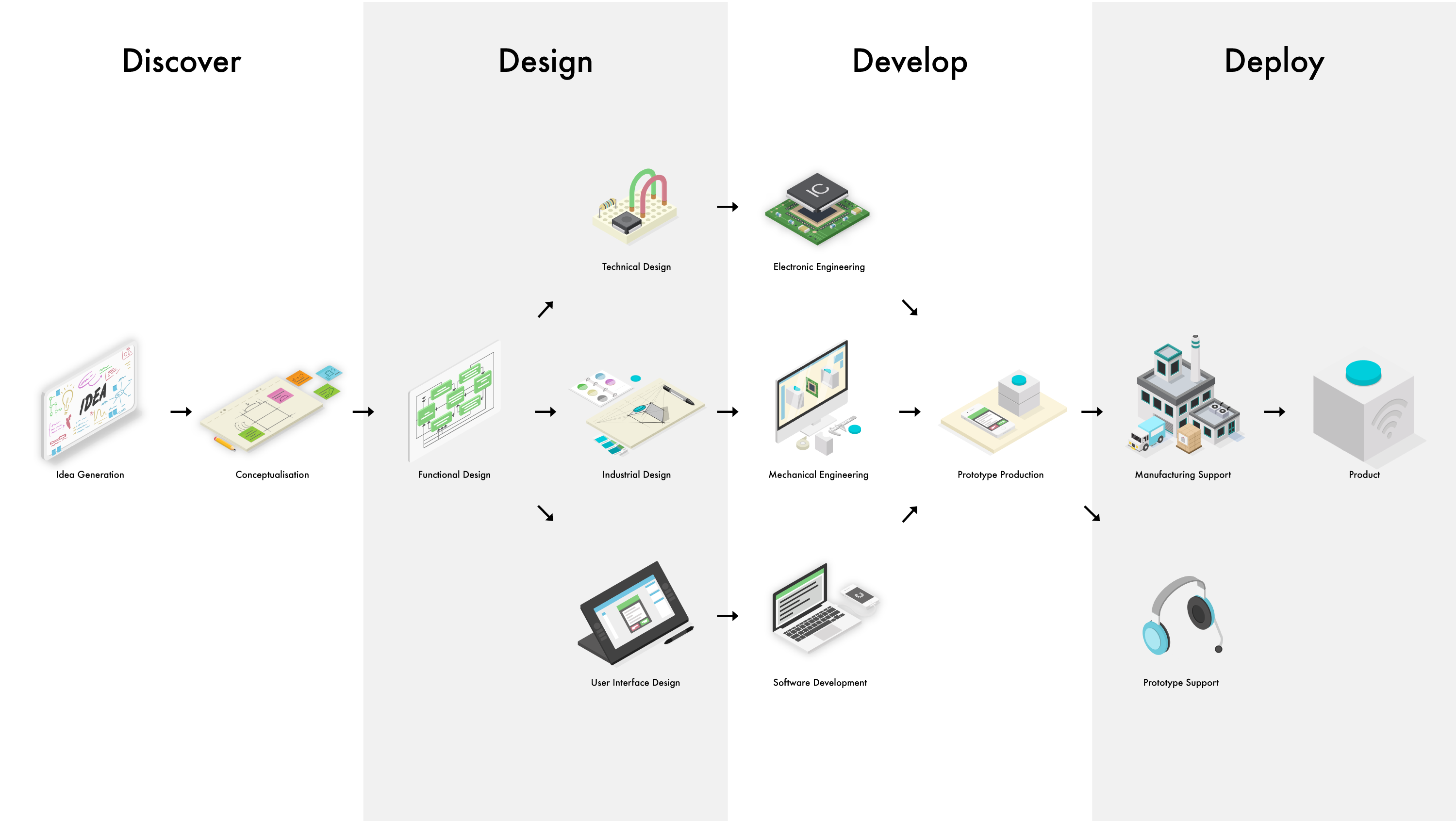 At Sophisti a product is designed with optimal user experience as the main focus. This requires creating and exploring different use scenarios. In case of connected products, the user experience should cross between physical and digital interaction as seamless as possible. The Functional Design is defined using state-transition diagrams, sketched scenarios and includes a detailed list of functionalities and product specifications.